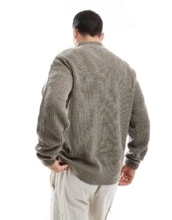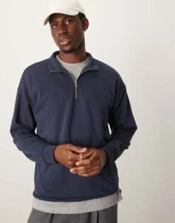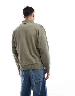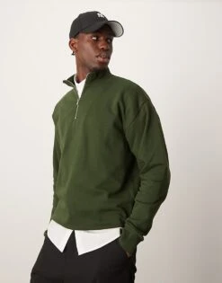 New Look 1/4 Zip Funnel Neck Sweatshirt In Dark Green For Men