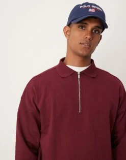New Look 1/4 Zip Polo Sweatshirt In Burgundy For Men Dark Red