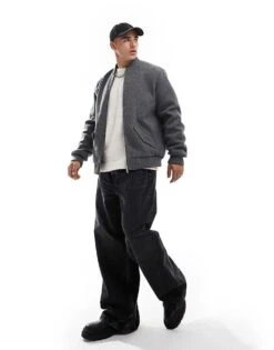 New Look Wool Look Bomber Jacket In Grey For Men Mid Grey